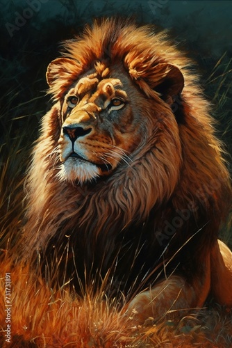 Fototapeta premium AI generated illustration of a lion against a grassy background