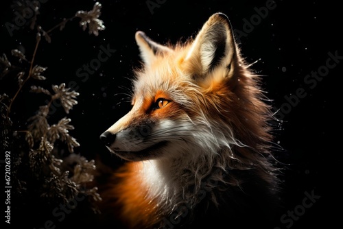 Fototapeta premium AI generated illustration of a red fox with thick fur looking intently at something in the distance