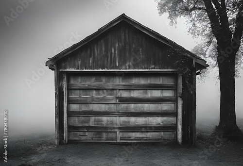 © Wirestock, Obraz premium AI generated illustration of a small wooden shack on dirt ground beside a tree