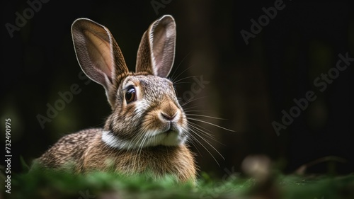 Fototapeta premium AI generated illustration of a wild rabbit relaxing in a grassy meadow, looking inquisitively