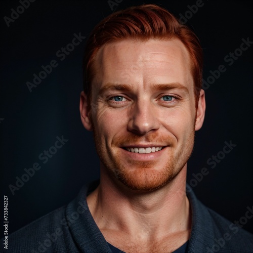 © Wirestock, Obraz premium AI generated illustration of a young ginger male with bright blue eyes