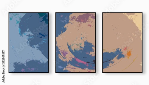 © Wirestock, Naklejka premium AI-generated illustration of abstract painting combinations with brown and blue hues