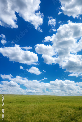 Obraz premium AI generated illustration of cloudscape with green meadow on a sunny day