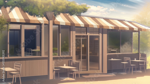Fototapeta premium アニメ調の街系背景の高解像度画像イラスト(AI generated image)