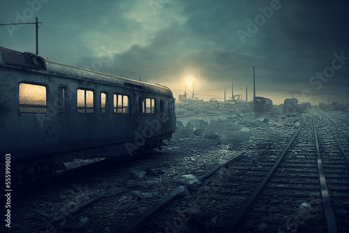 Obraz premium ポストアポカリプスや廃墟系背景の高解像度画像イラスト(AI generated image)