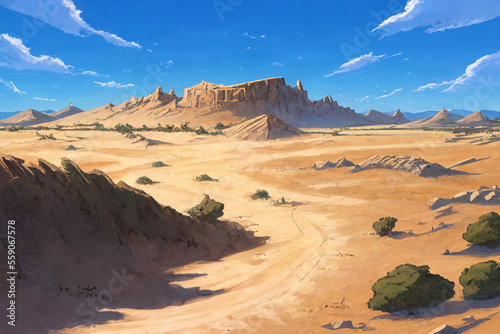 Fototapeta premium アニメ映画風の自然系背景のイラスト(AI generated image)