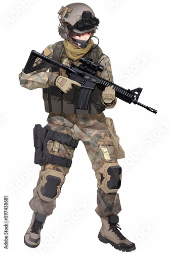 Fototapeta premium ガンナーの男性キャラクターの全身イラスト(AI generated image)