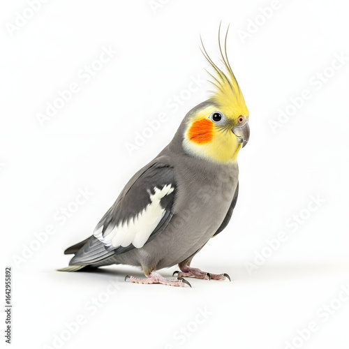 © MD SHAHID MIYA, Fototapeta premium Ai generated image of adorable cockatiel with yellow crest isolated on white background, a charming pet