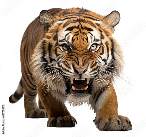 © Prasong Takham, Fototapeta premium AI generated image of Ferocious tiger with bared fangs.PNG