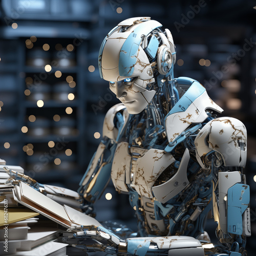 Fototapeta premium AI generated images,robots sitting at desk in the office and working with...