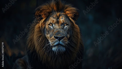 © Maxim Borbut, Obraz premium AI-generated lion stares at camera with selective focus on foreground