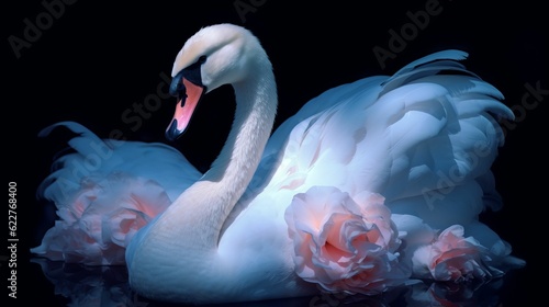 © Camatron/Wirestock Creators, Naklejka premium AI generated swan on water with flowers