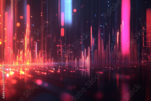 © Rattana, Fototapeta premium AI-generated visual representation of demand dynamics, showcasing intricate patterns and vibrant colors in a conceptual landscape.