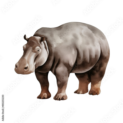 Obraz premium AI-Generated Watercolor Hippopotamus Clip Art Illustration. Isolated elements...