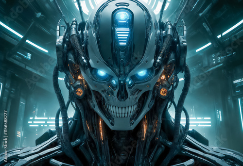 © slow.burner.2x, Fototapeta premium 宇宙船の中でサイボーグが青い目を光らせている,AI画像,Generative AI