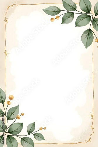 Obraz premium AI Generative. Watercolor Eucalyptus Leaves and Golden Berries Botanical Frame Background. 2