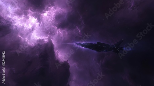 Fototapeta premium AI guiding a spacecraft through a cosmic storm using physics-based calculations