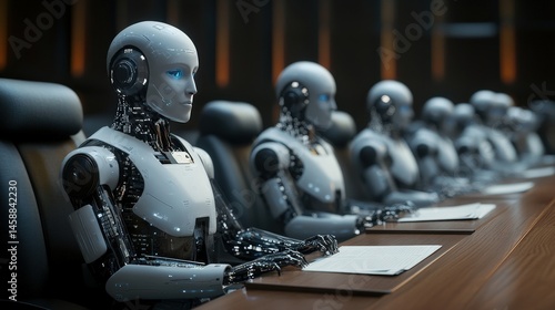 Fototapeta premium AI handles legal research, draft contracts, and prepares case files, assisting human lawyers in a high-tech environment