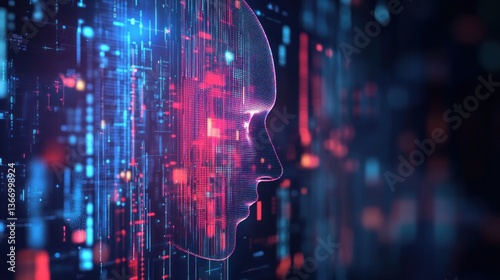 © gentho, Fototapeta premium AI head profile with digital code