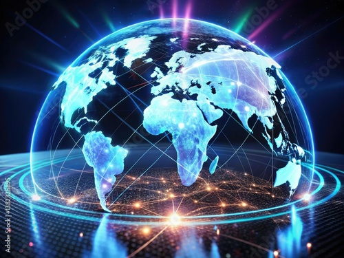 Fototapeta premium AI Holographic World Map: Futuristic Global Monitoring System - Minimalist 3D Data Visualization