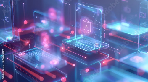 © Dekastro, Naklejka premium AI icon in frosted glass, open in several UI windows made of thin plates