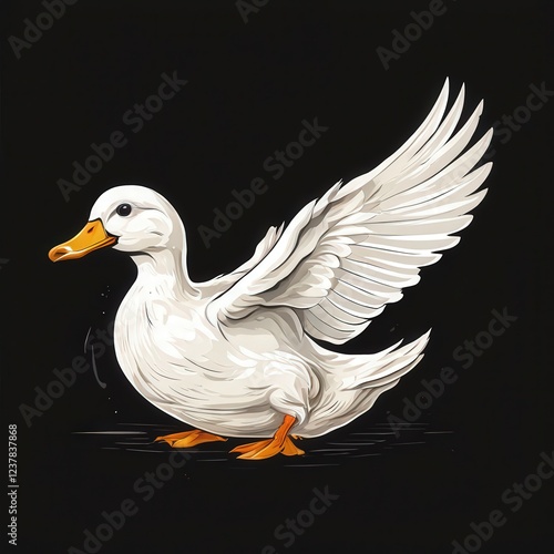© boying, Obraz premium AI Image Generator, Illustration of a White Duck Spreading I