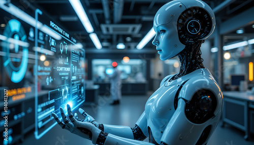 Fototapeta premium AI Interface, Robot Analyzing Data