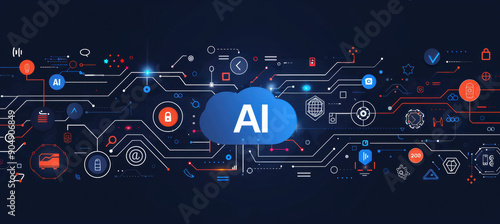 Obraz premium AI Letters with Circuit Pattern.