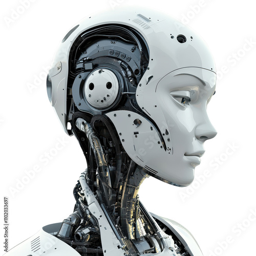 © Pngs , Fototapeta premium AI Machine for Digital Learning on White Background Transparent PNG background.