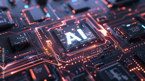 Obraz premium AI Microprocessor on Advanced Circuit Board with LED Illumination