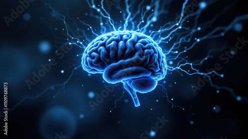 Fototapeta premium AI neural network with electric sparks, representing artificial general intelligence.