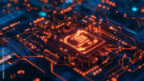 Obraz premium AI-optimized blockchain security, visualized in glowing circuits, advanced tech hub