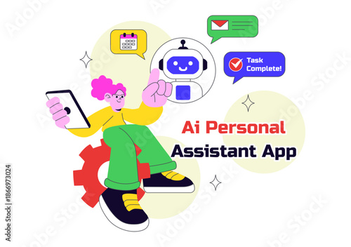 Fototapeta premium AI Personal Assistant App Vector Illustration Featuring Smart Digital Assistant Interface, Modern Mobile Technology, and Intelligent Automation