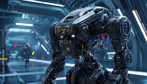 Fototapeta premium AI-Powered Autonomous Security Bot With Ceramic Plating In High-Tech...