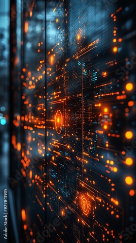 © Shahida, Obraz premium AI-Powered Business Analytics Display with Glowing Data Points on Dark Background