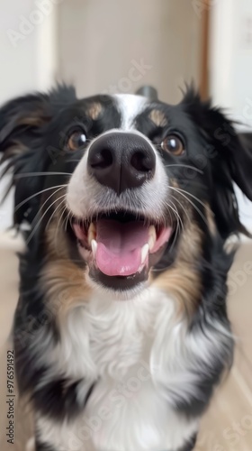 Fototapeta premium AI-powered dog language translator, utilizing algorithms to interpret barks, facial expressions, and movements for enhanced pet-human communication and understanding, advancing pet care technology.