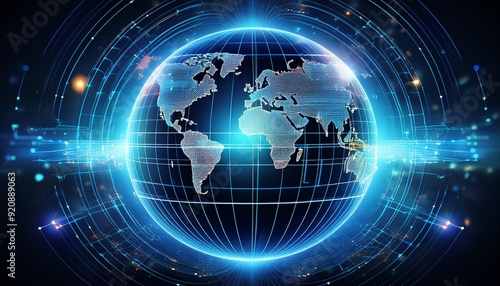Obraz premium AI-powered globe with digital data streams flowing into it, symbolizing...