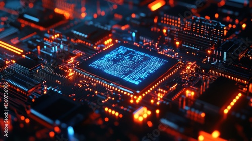 © Futureaz, Obraz premium AI-powered Quantum Chip with Holographic Data Projection