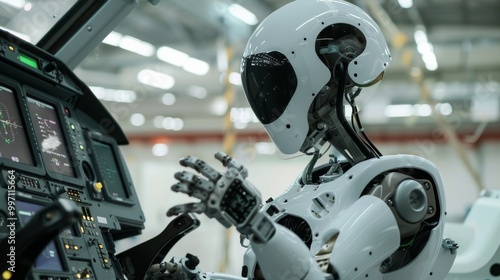 © Pat J., Fototapeta premium AI-powered robot analyzing data in a research facility