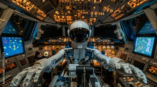 © Pat J., Fototapeta premium AI-powered robot performing vibration analysis on an aircraft engine