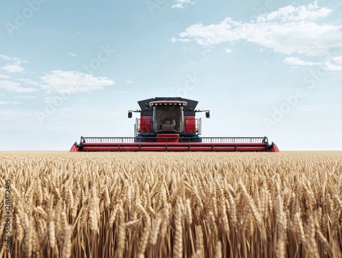 Fototapeta premium AI-powered robotic combine harvester optimizing grain collection efficiency