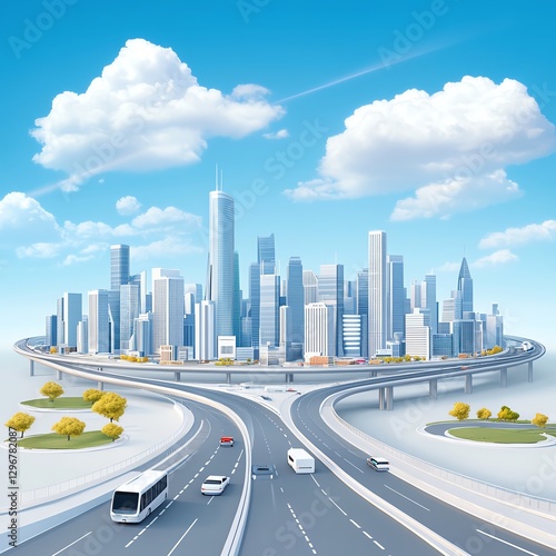 © Orawee, Fototapeta premium AI-powered smart city, futuristic urban landscape, 3D illustration