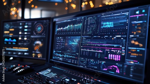 Obraz premium AI Processing Data Streams in a Digital Control Center