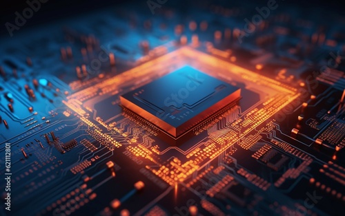 © Rax Qiu, Obraz premium AI processor on a electronic circuit board
