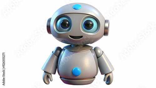 © third_3rd, Fototapeta premium AI Robot A 3D cute AI robot with soft curves and a cheerful face, floating mid-air with a white background