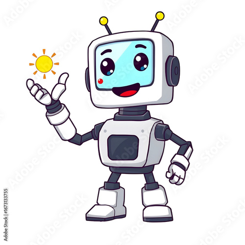 © impossibleconcepts, Fototapeta premium AI Robot Weather Assistant Icon – Futuristic Forecast Bot Vector Illustration for Mobile Apps, Website Widgets, Climate Branding, and Smart AI Technology Design