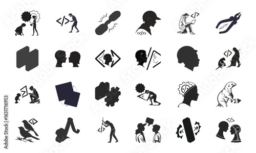 © MORIOMAKTER, Obraz premium AI Technology and Innovation Icon Set – Artificial Intelligence, Neural Network, Automation, Machine Learning, Cybersecurity, and Communication Vector Bundle