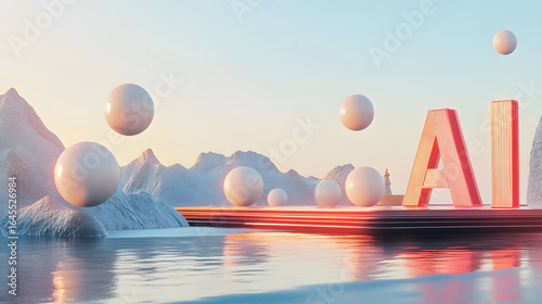 Naklejka premium AI Technology Concept with Floating Spheres and Geometric Shapes
