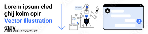 Fototapeta premium AI technology, robotics, chatbots, automated tools, digital communication, analytics. A robot processes data, alongside a chat window. AI technology and chatbots concept