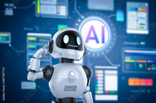 © phonlamaiphoto, Fototapeta premium Ai technology with assistant robot with hud graphic interface